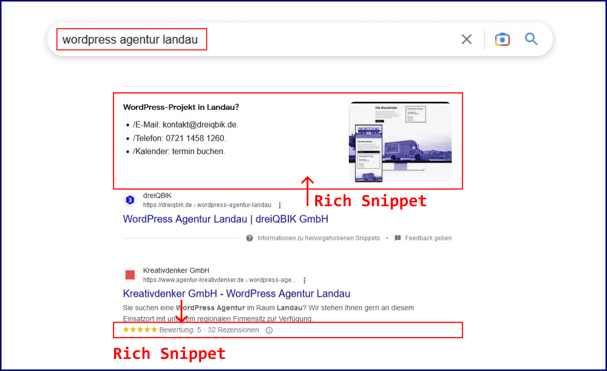 Meta-Tags und strukturierte Daten: Optimiert Meta-Tags wie Title-Tags und Meta-Beschreibungen, um Suchmaschinen und Nutzern eine klare Information über den Inhalt jeder Seite zu geben. Implementiert strukturierte Daten, um Suchmaschinen zusätzliche Informationen über eure Website bereitzustellen und die Darstellung in den Suchergebnissen zu verbessern.